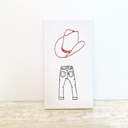 깜찍한 청바지와 카우보이모자를 자수로 표현한 예쁜액자입니다.