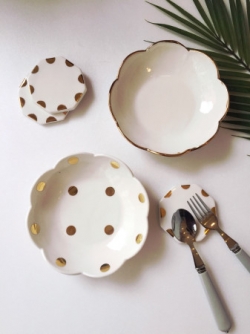 하얀 바탕위에 23.5k 골드로 마감한 접시