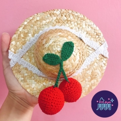 강아지 고양이 핸드메이드 체리 밀짚모자