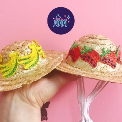 강아지 고양이 핸드메이드 딸기 바나나 밀짚모자